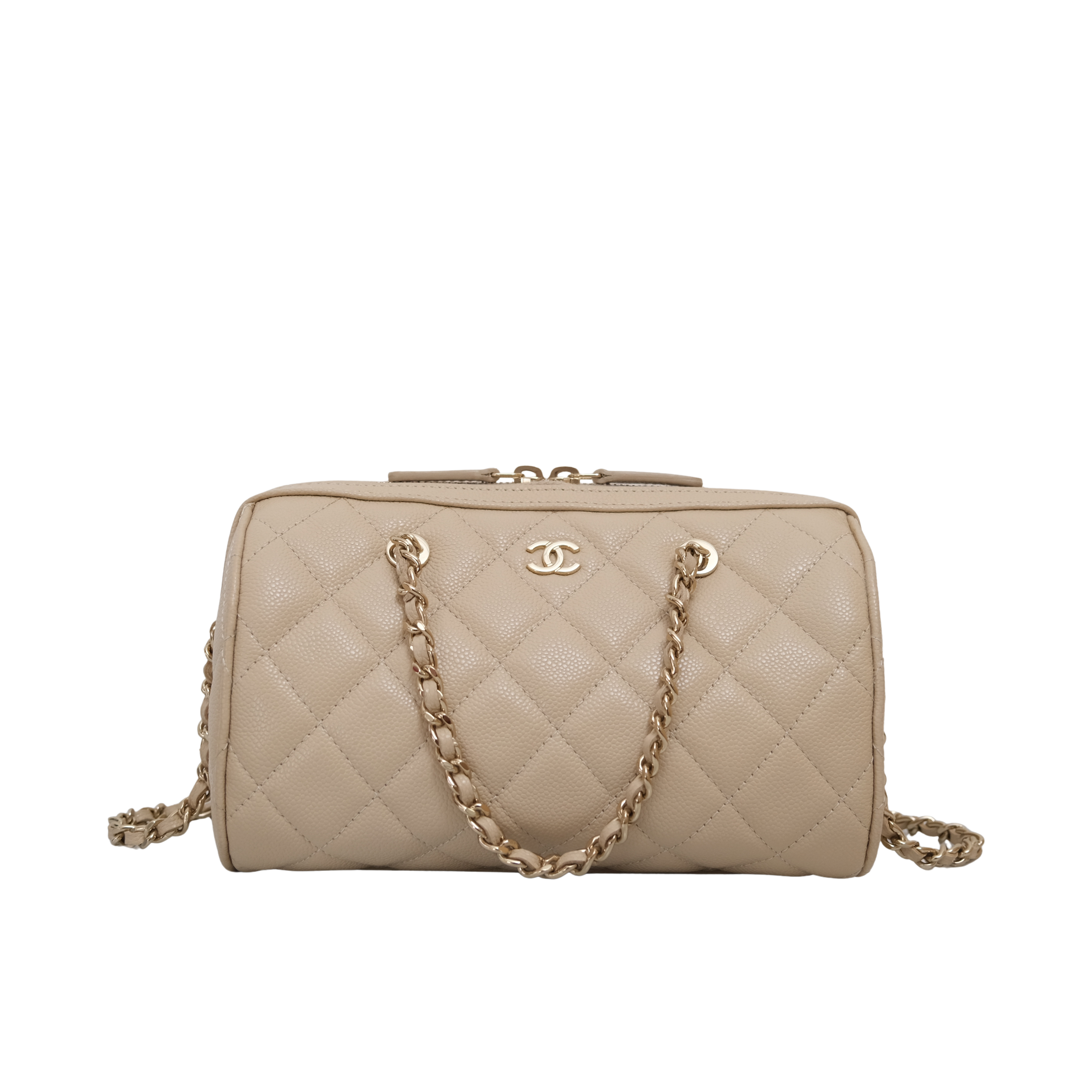 Chanel Mini Bowling Bag Beige Caviar -(MICROCHIP)