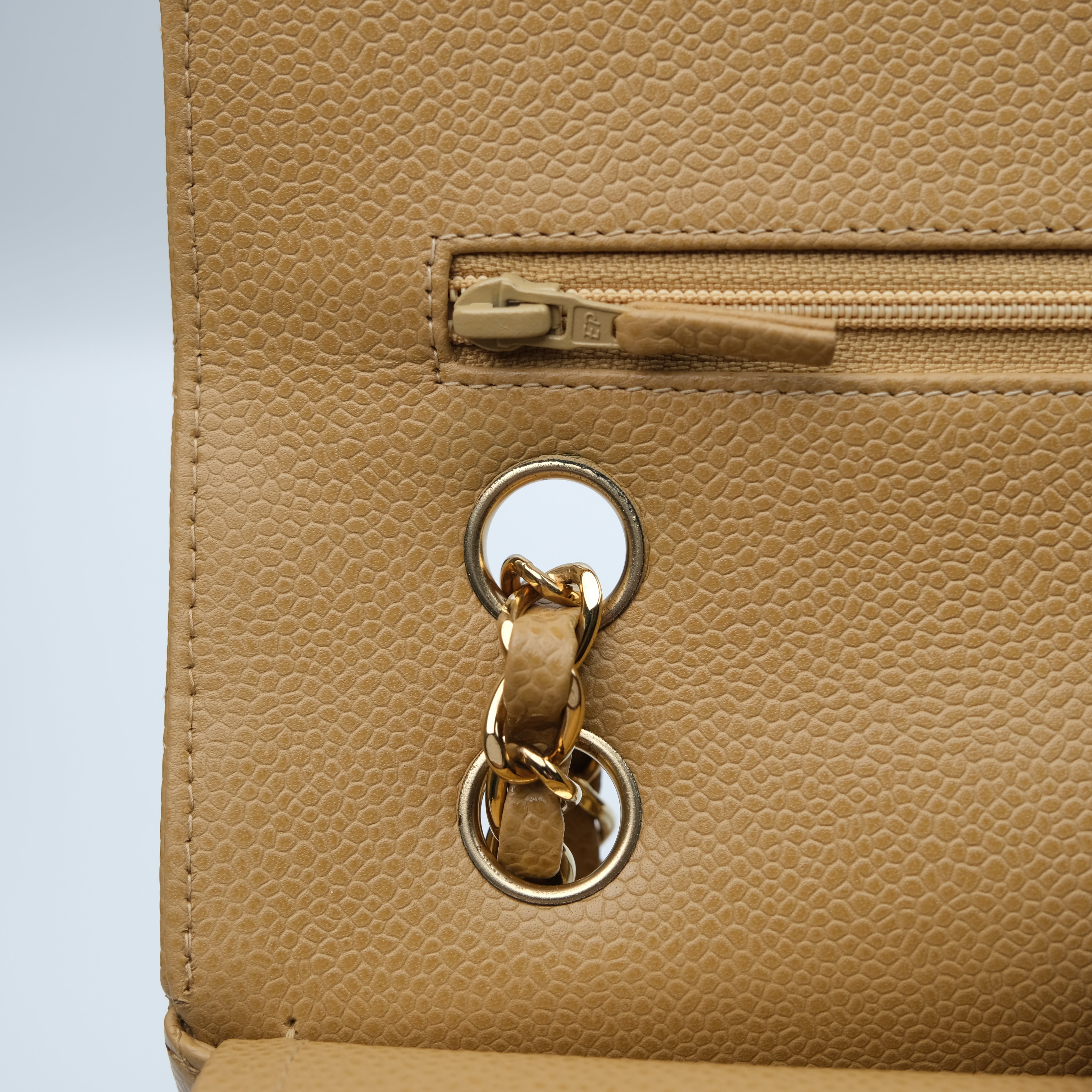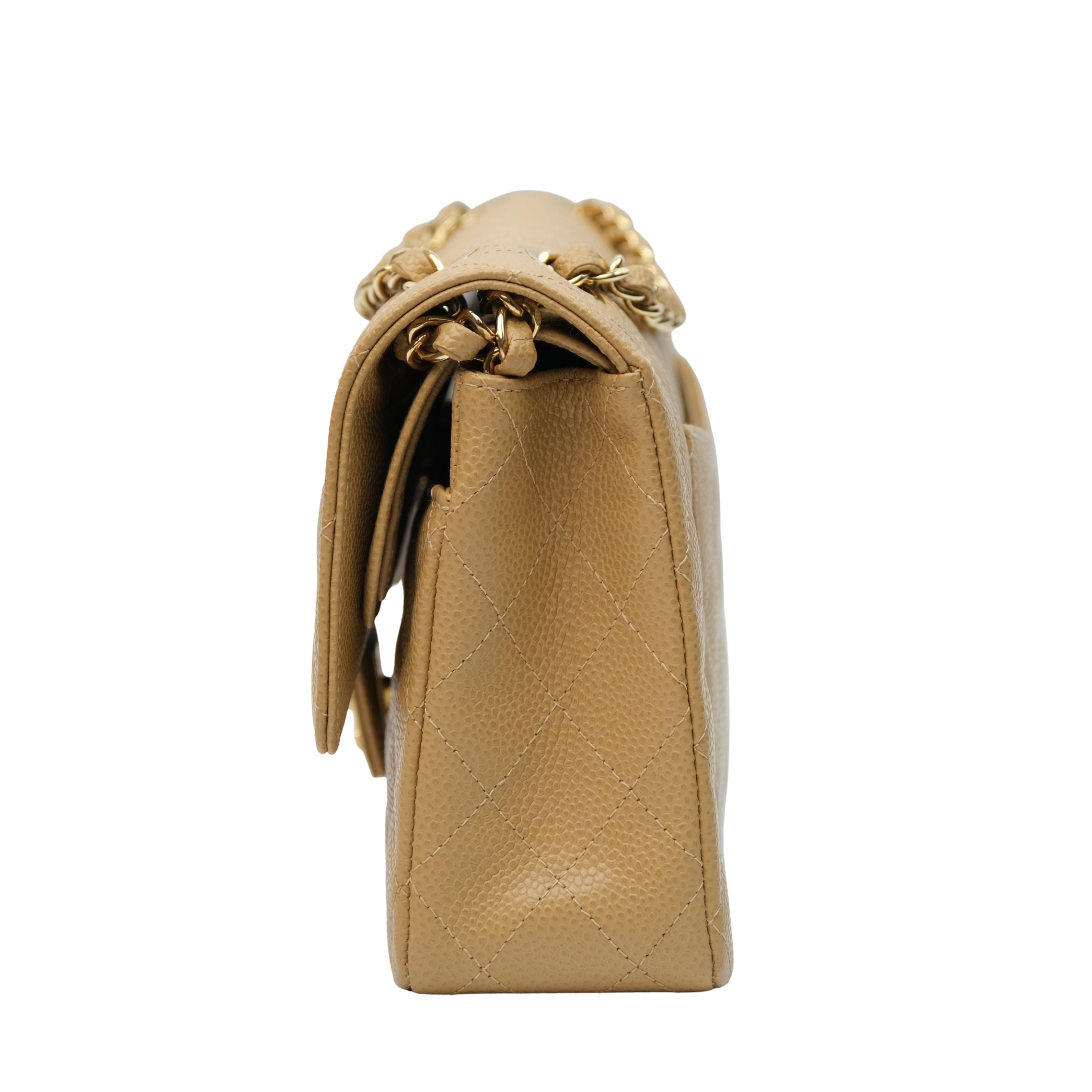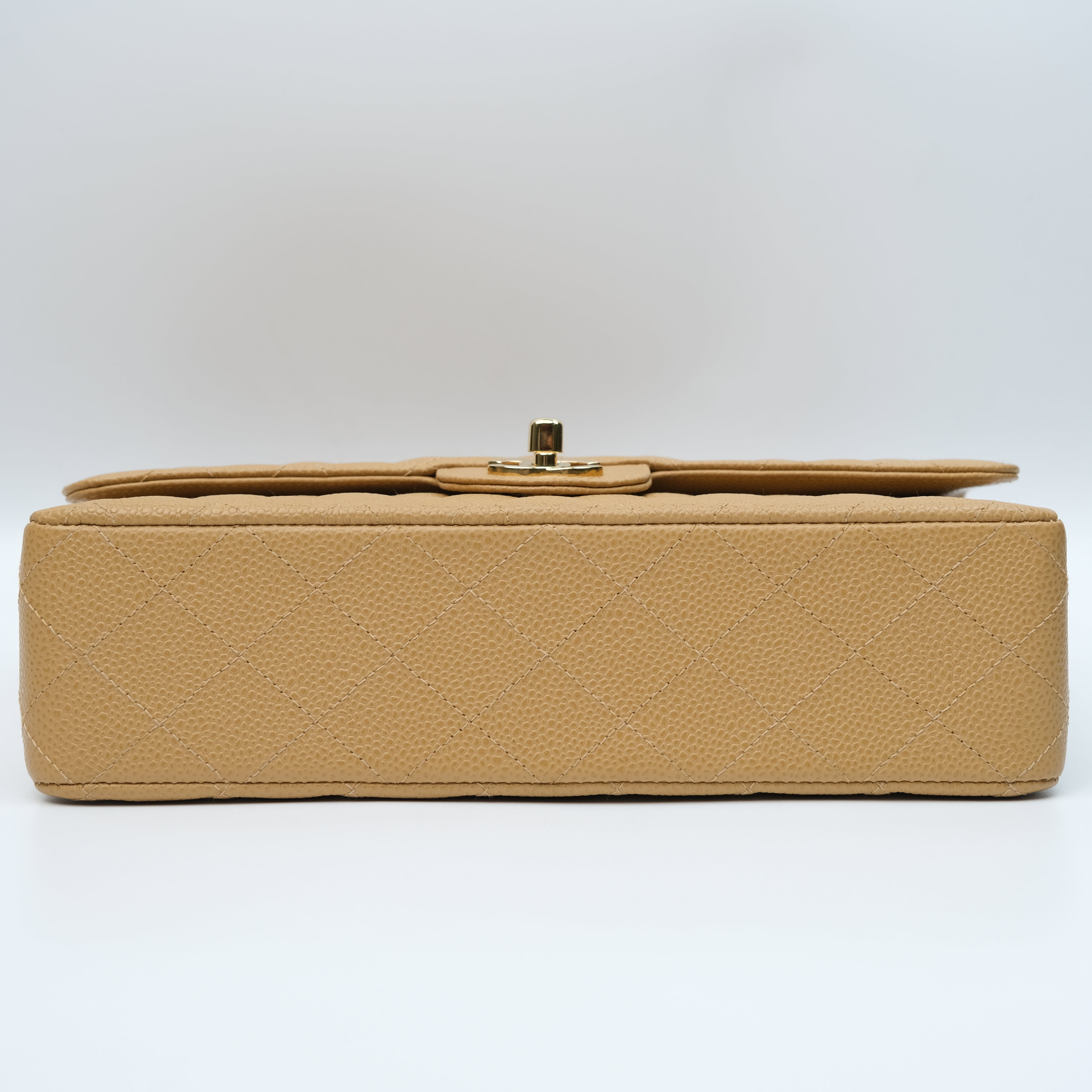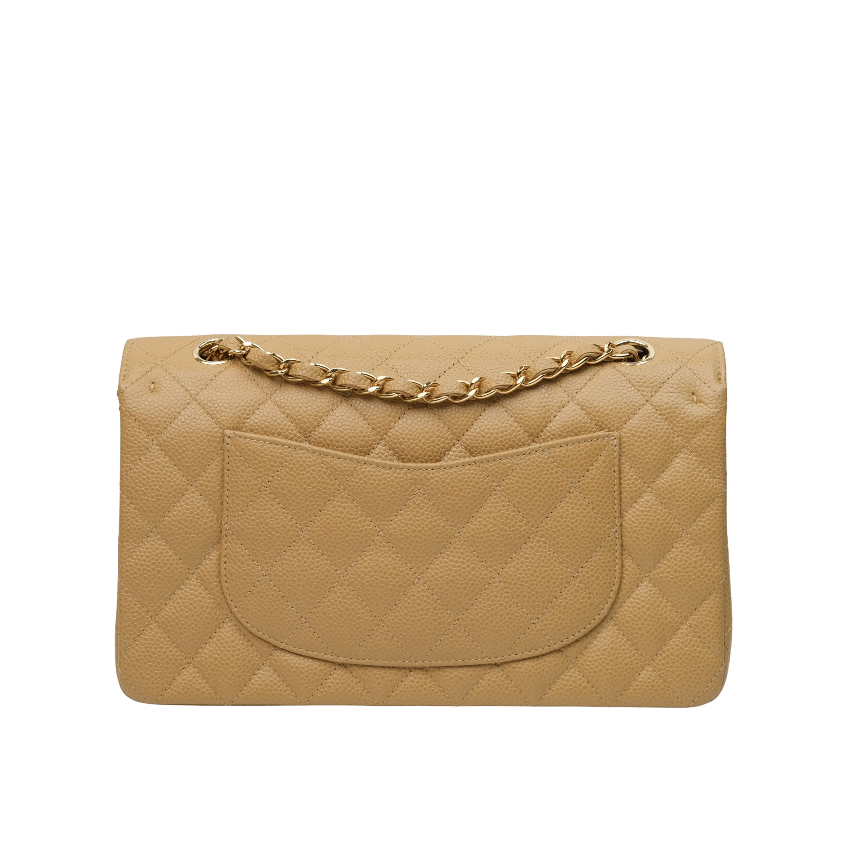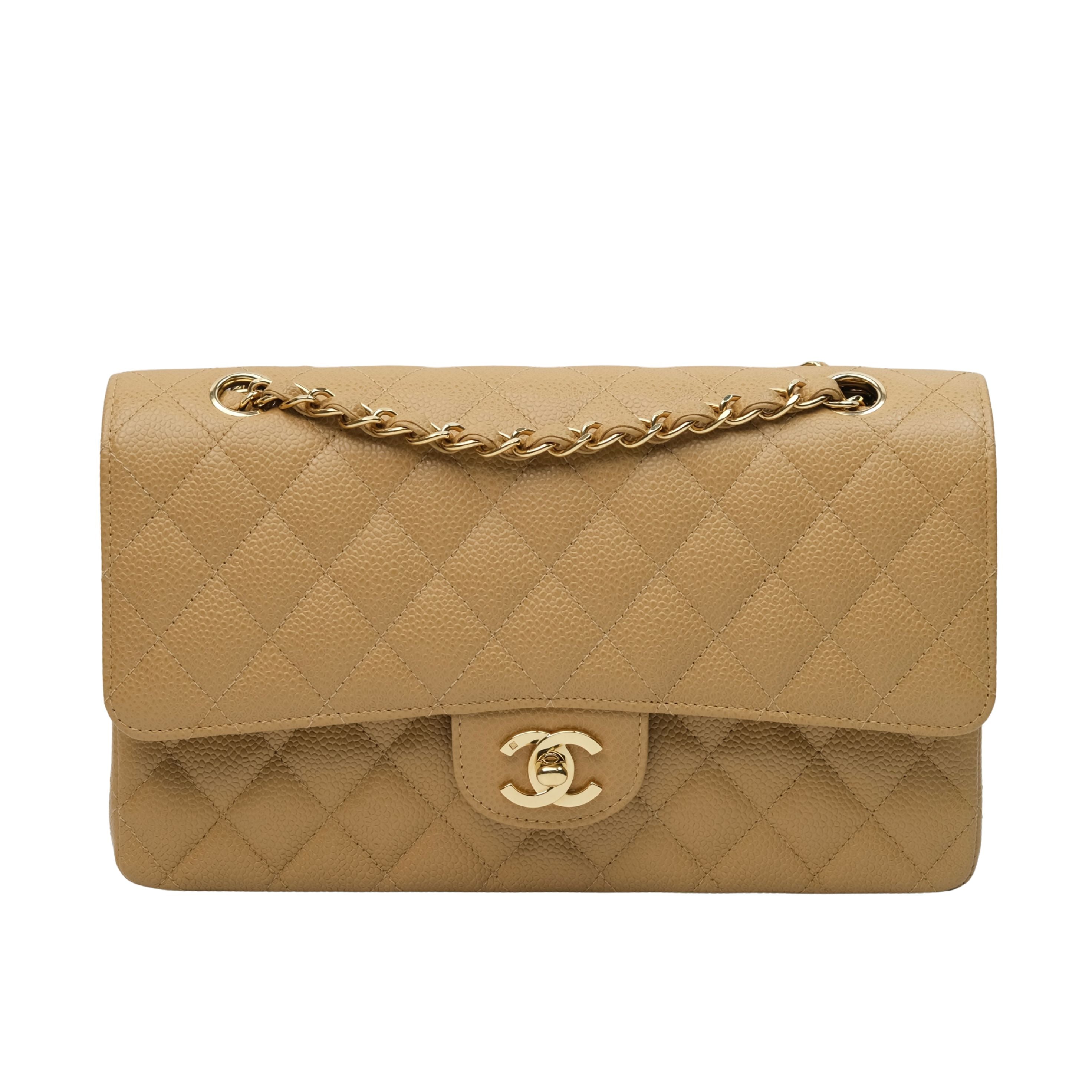 Chanel Double Flap Medium Dark Beige Vintage GHW -s8