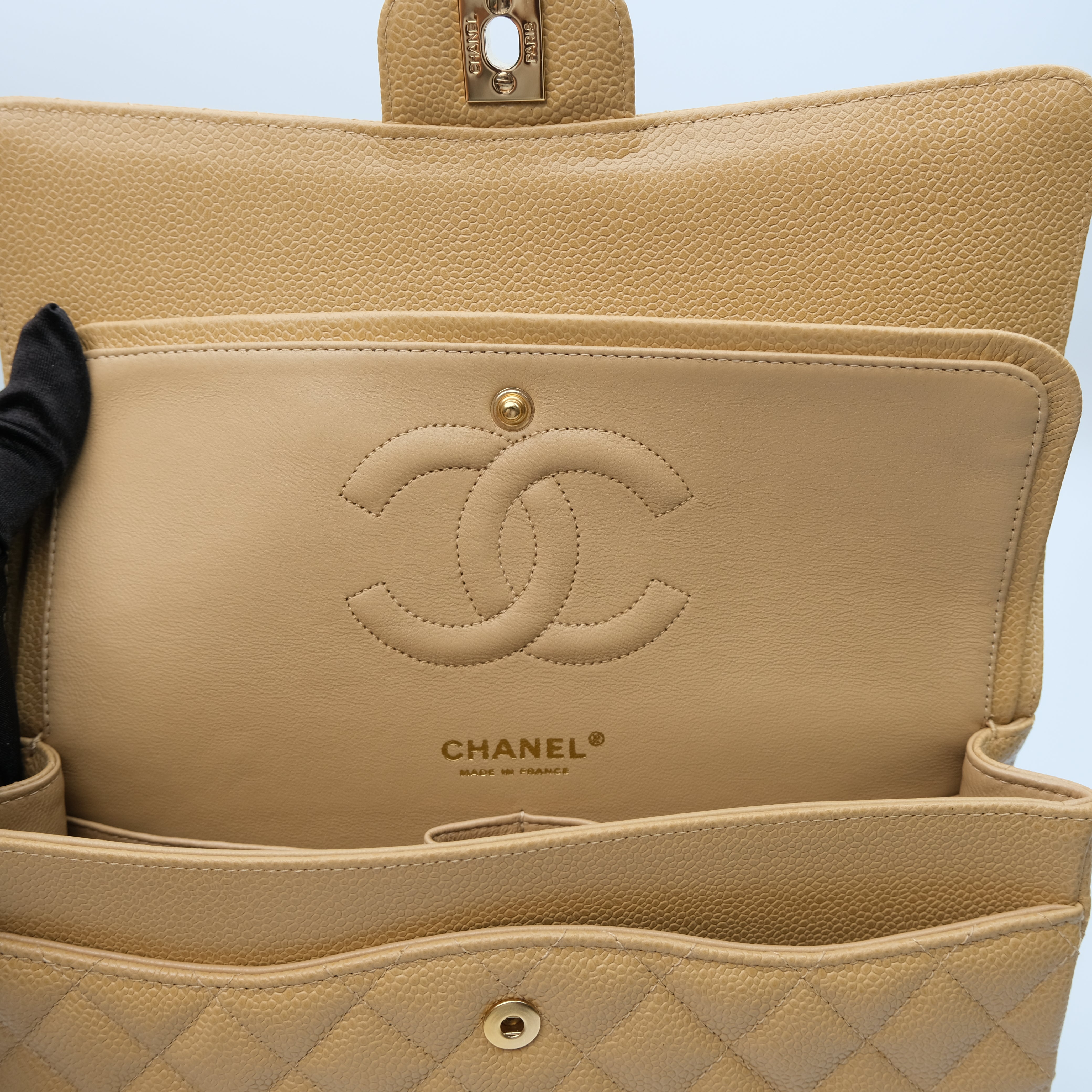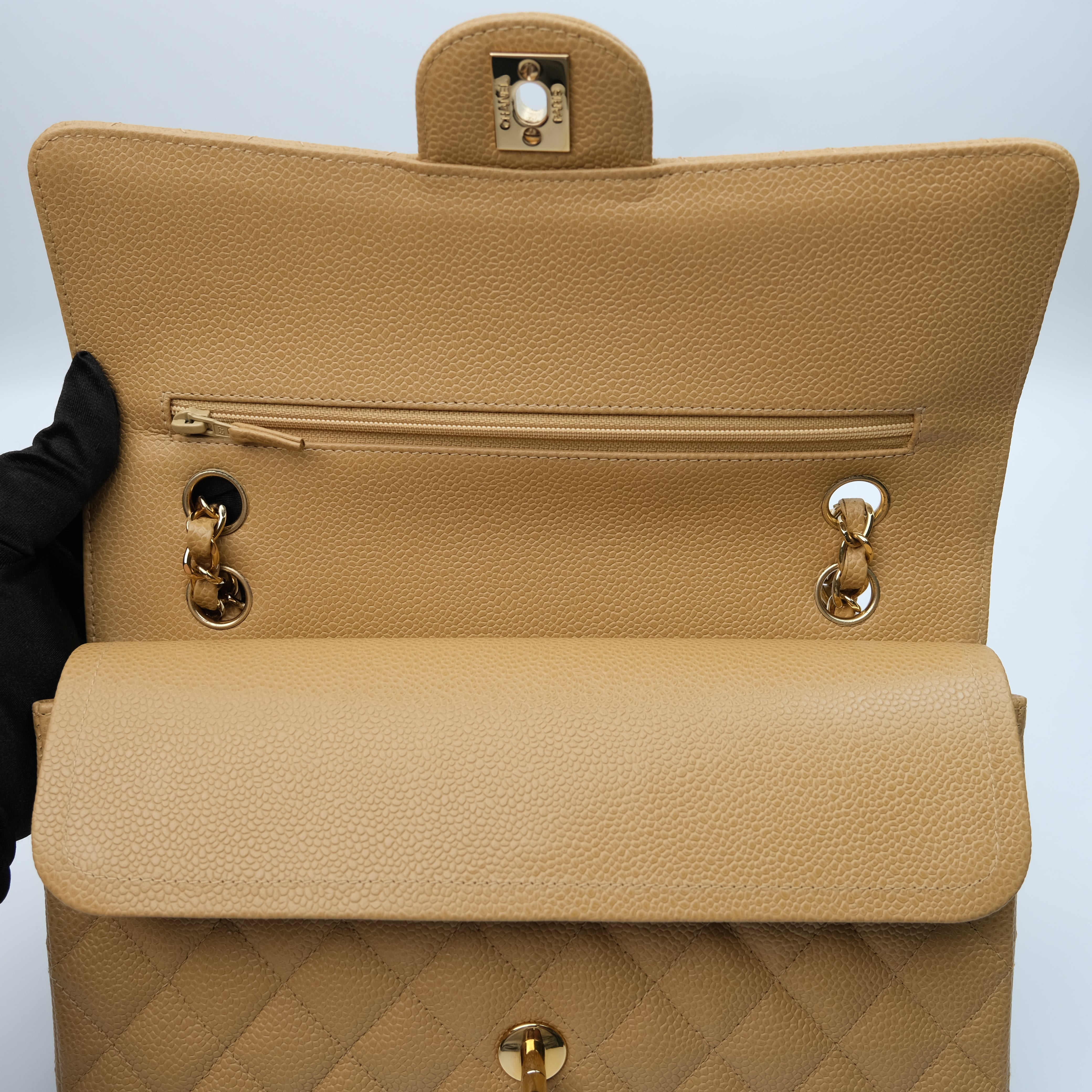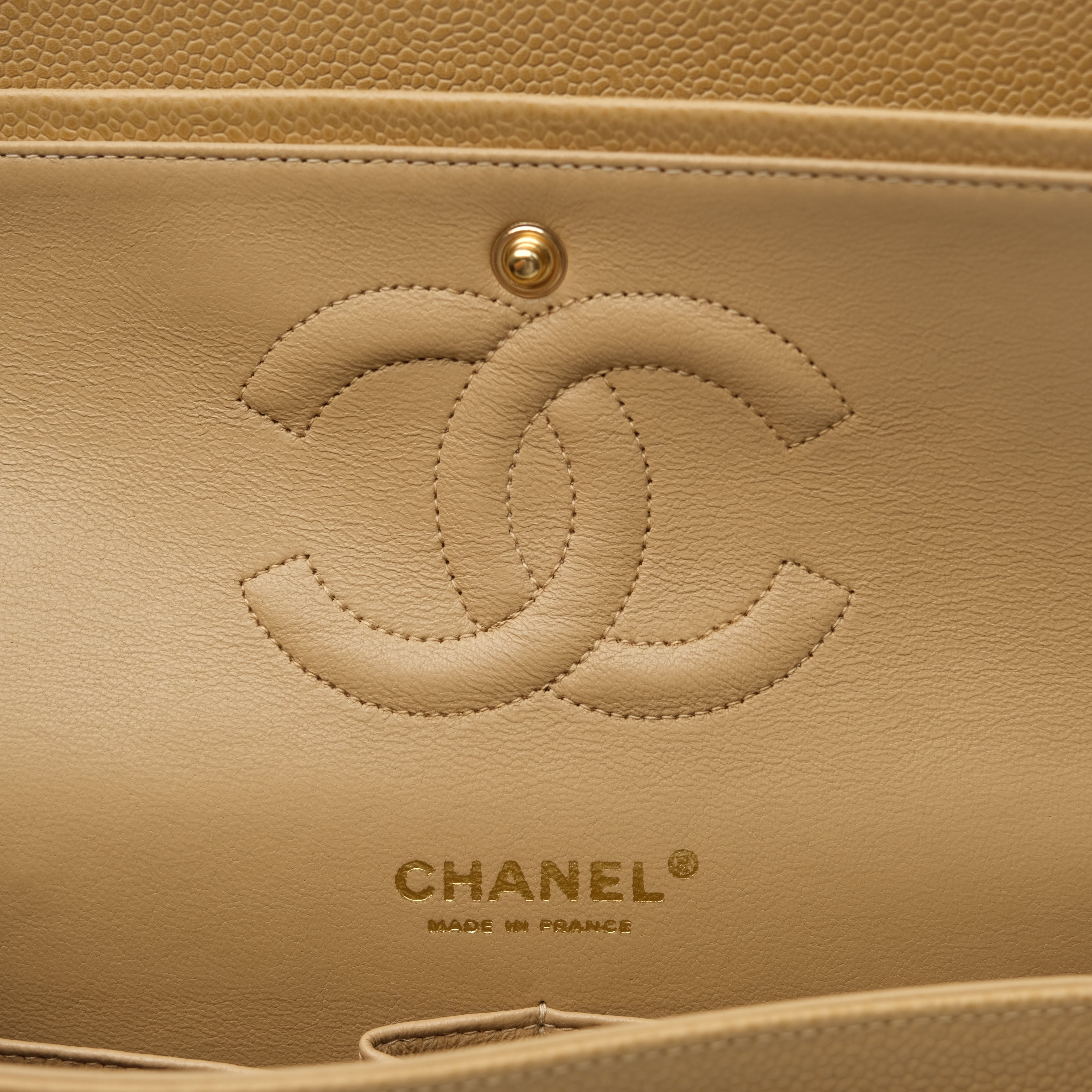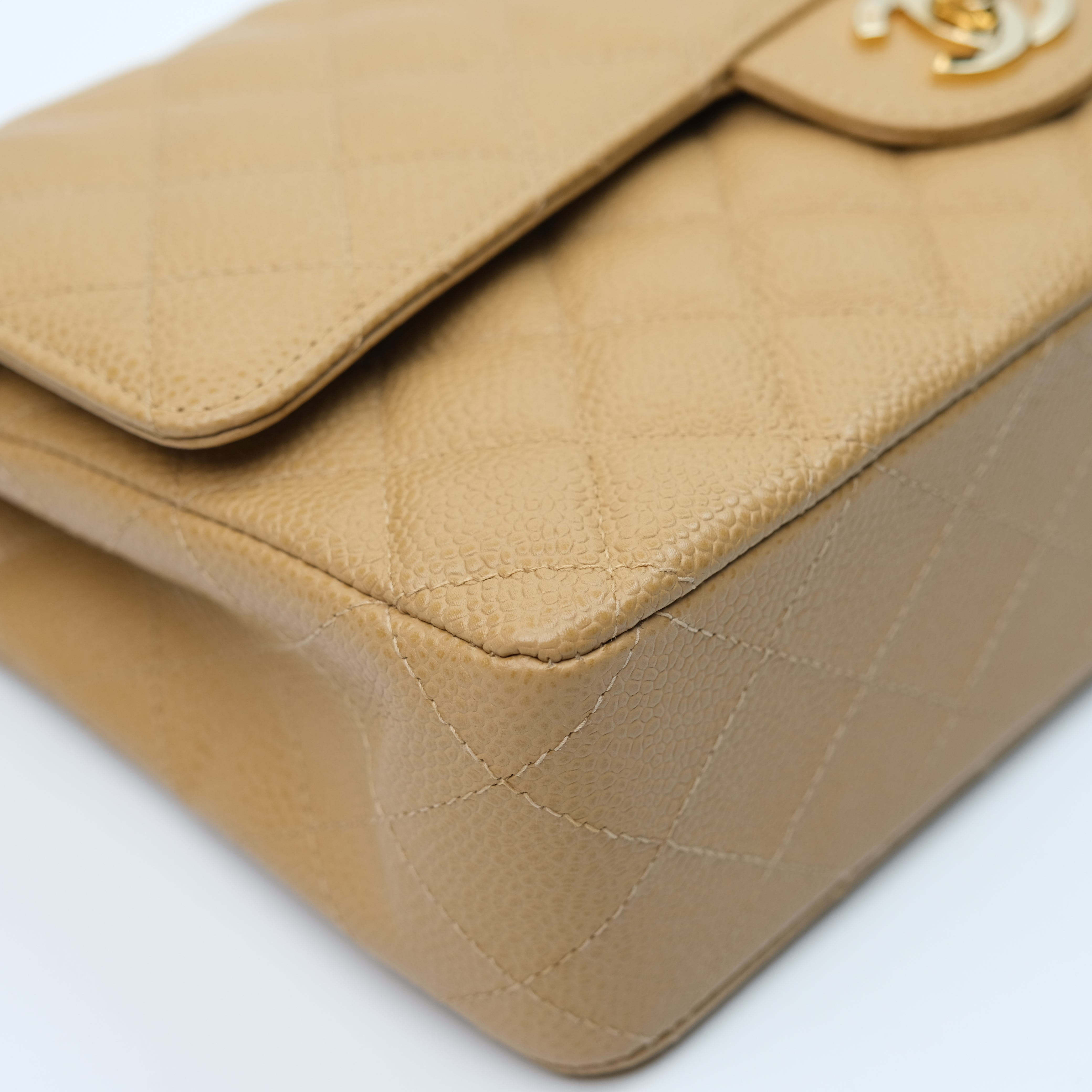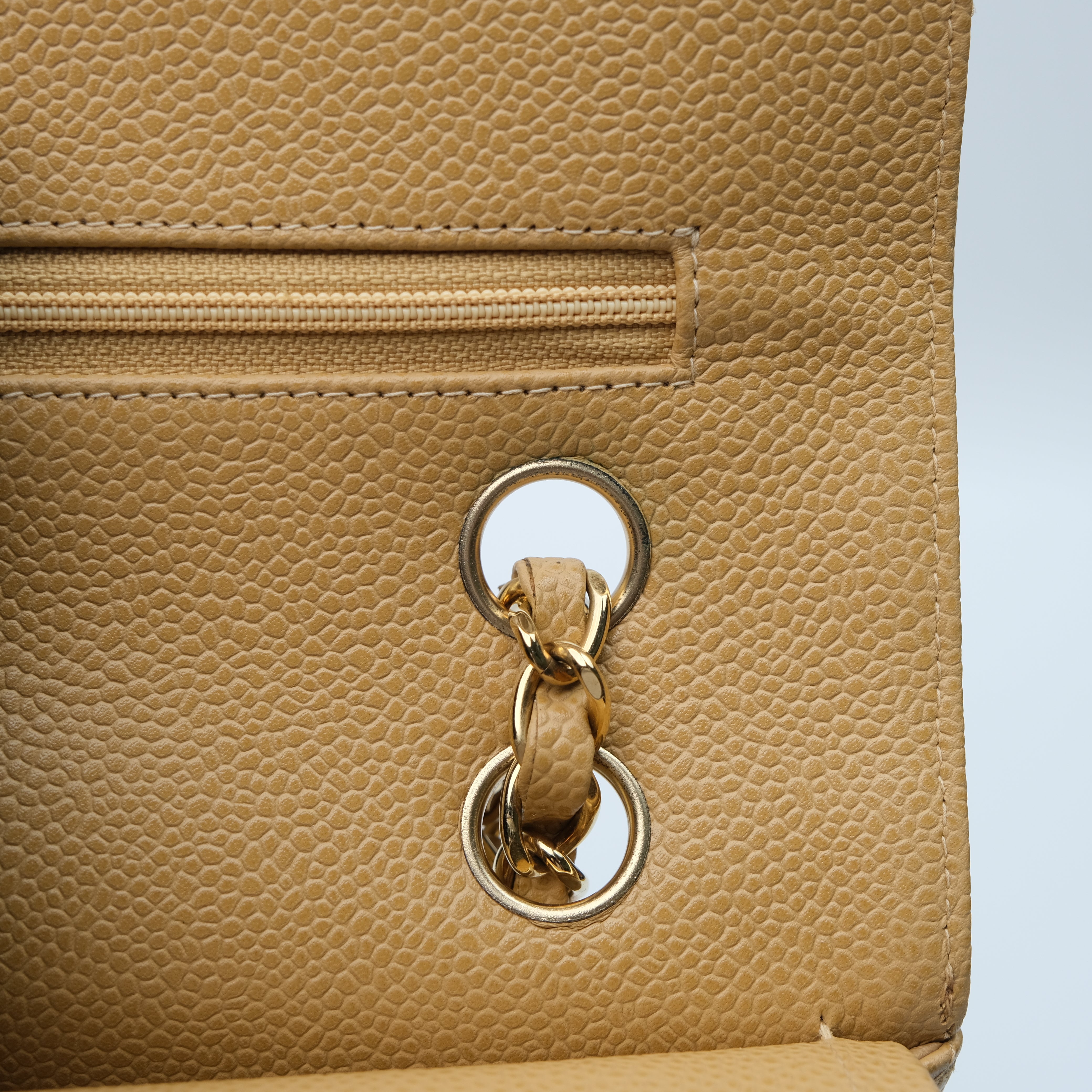 Chanel Double Flap Medium Dark Beige Vintage GHW -s8